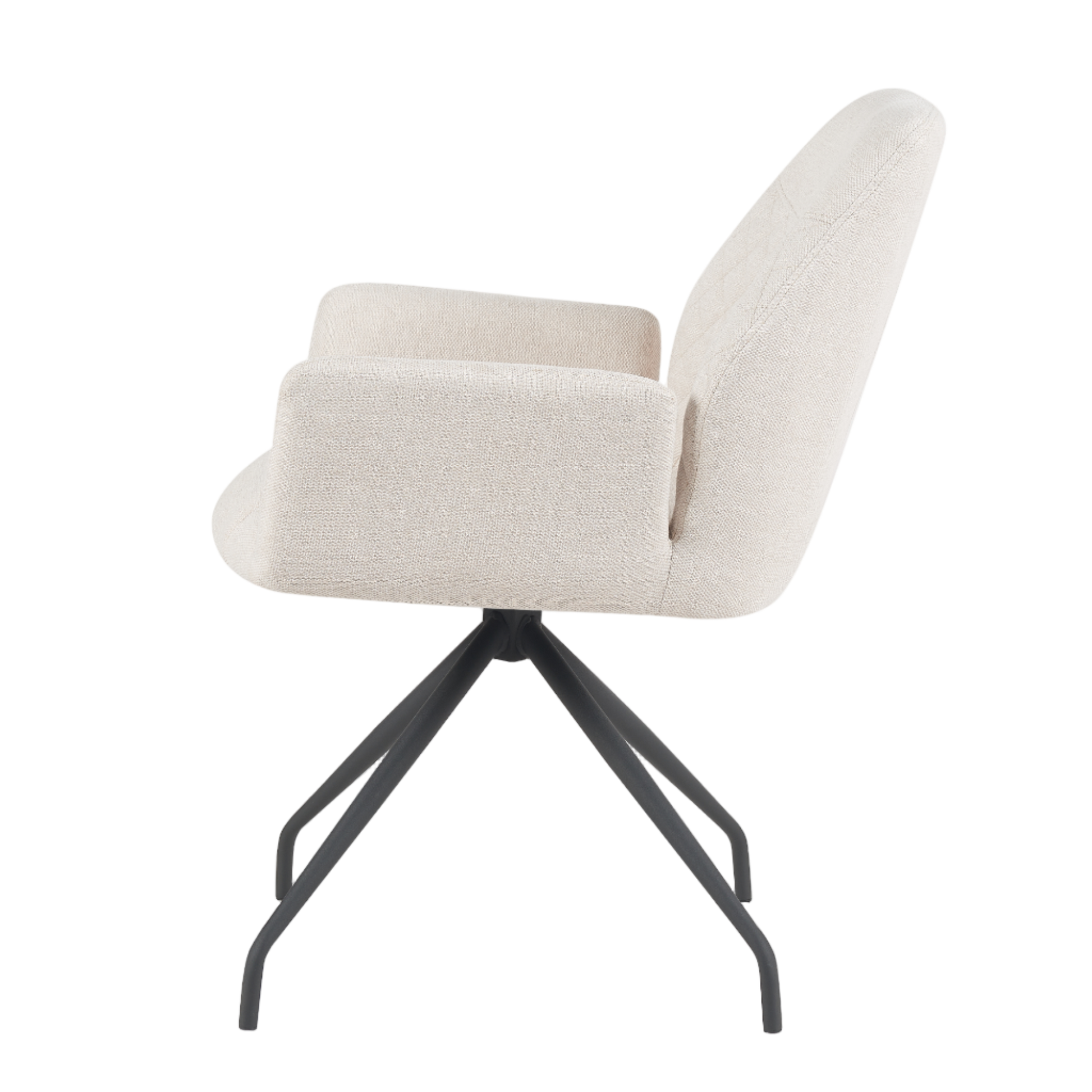 The Denis Chair blends sculpted comfort with refined modern design. Its quilted backrest and soft, stone-hued upholstery offer a gentle, supportive seat, while the angular steel base adds a sleek architectural touch. Designed for dining rooms, studios, or home offices, the Denis brings a sense of calm sophistication to any space with its clean lines and elevated form.